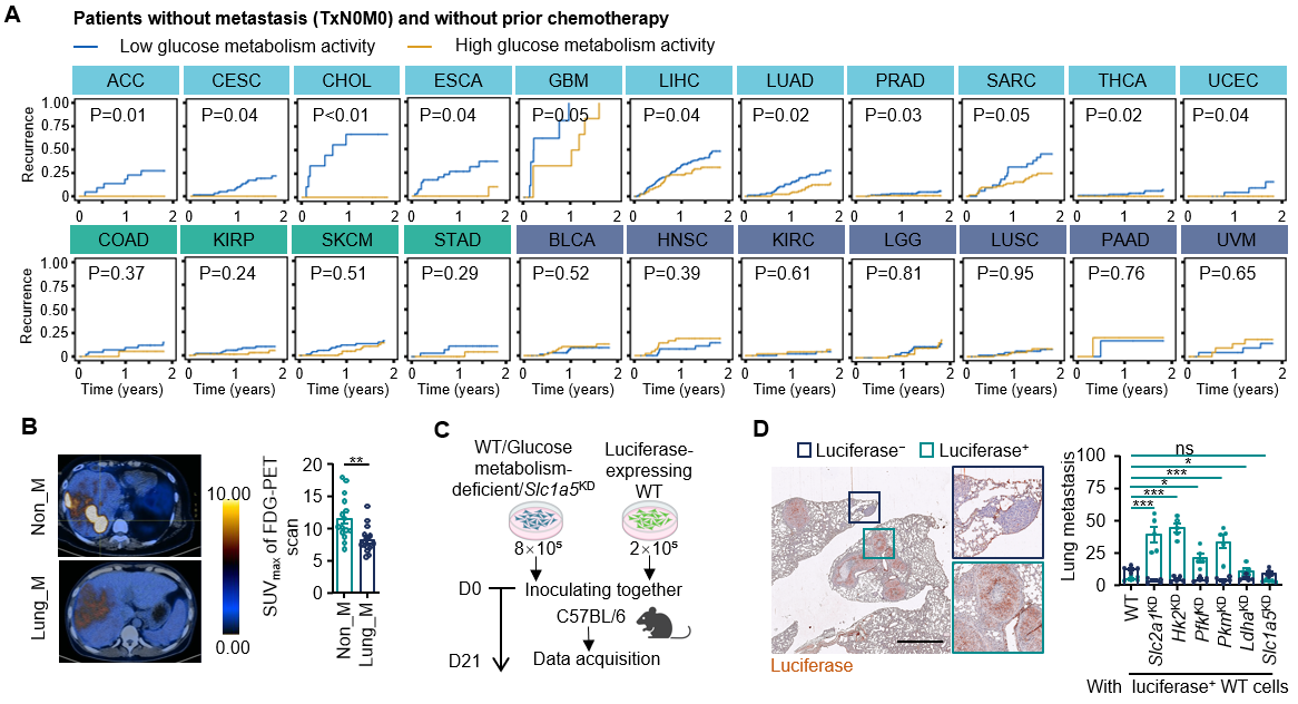 The study analyzed large-scale clinical datasets spanning 15 cancer types and found that patients with lower tumor glucose metabolic activity exhibited a significantly higher risk of recurrence within two years after surgery. In hepatocellular carcinoma, tumors from patients who developed lung metastases exhibited significantly lower glucose metabolism than those without metastasis.