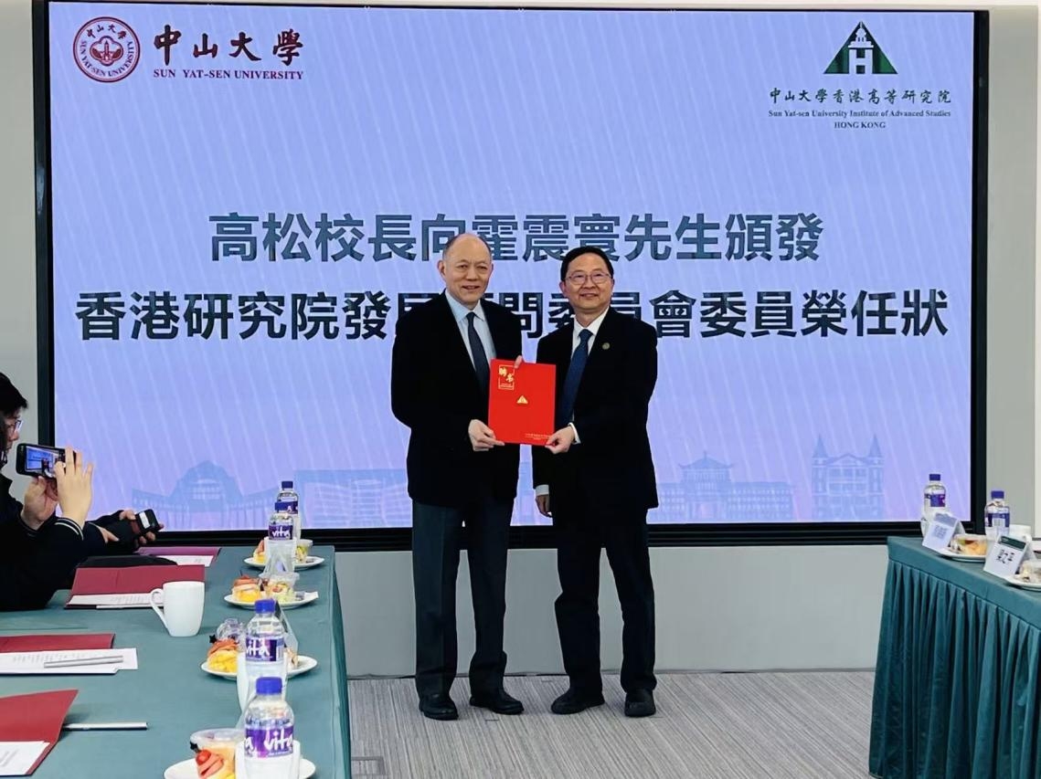 President Gao Song Presenting the Letter of Appointment as Member of the Development Advisory Committee of SYSUIASHK to Mr. Fok Chun-wan