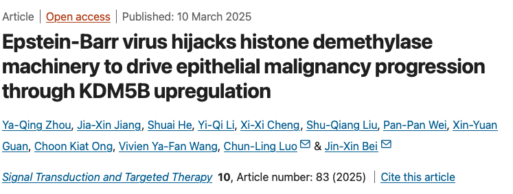 STTT丨EB病毒劫持組蛋白去甲基化途徑促進上皮腫瘤惡性進展的新機制